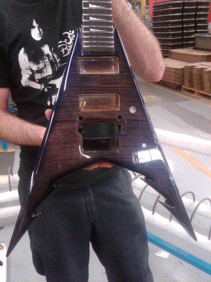 Tal y como lo dice el título, Corey ya nos mostró su guitarra casi terminada. En esta galería que les presentamos, es la de 7 cuerdas y la imagen del artículo que contiene la guitarra de color rojo, es la de 6 cuerdas (Corey la puso en su foto de perfil en Facebook).