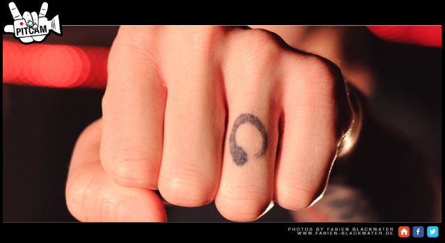 “No, pero tengo un Ensō en mi dedo anular (pueden leer más acerca del significado del tatuaje aquí) y me gusta porque puede relacionarse a muchas cosas, y tengo ese tatuaje en vez de mi anillo matrimonial – es más seguro, ya que tengo varios pasatiempos: la guitarra, Jiu-Jitsu y esas cosas.”