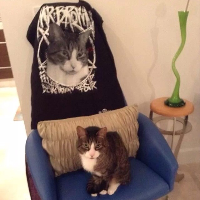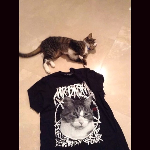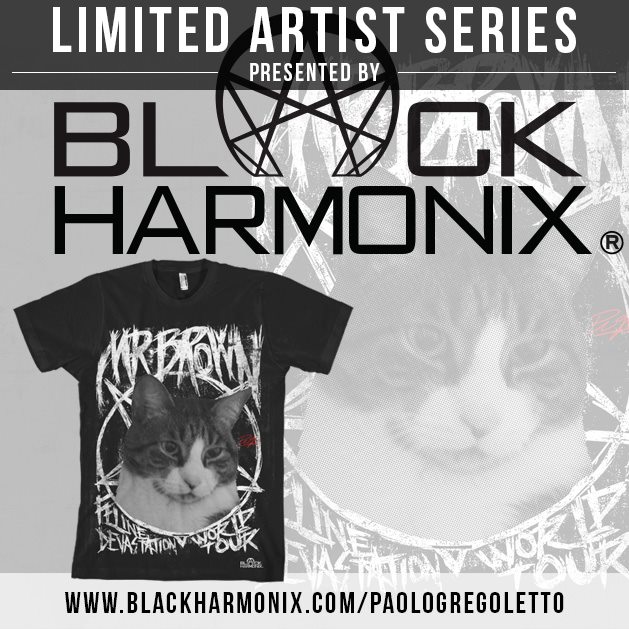 Enseguida tocan lo más importante de la entrevista: Mr. Brown, el gato de Paolo y el músico cuenta que estuvo enfermito por un tiempo, pero que su mamá ayudó mucho para que recuperara su salud y ahora está mejor, “Es terrible cuando tus animales enferman porque los animales son mejores que la gente. Hubo personas que se preocuparon por él y fue lindo ver eso. Es raro porque siempre pongo fotos de él y la gente tiene esa extraña conexión con él, y siempre me preguntan por él. Se ha convertido en una especie de celebridad y creo que me ha superado porque a la gente le parece gustar más cuando pongo cosas sobre él que cuando pongo algo mío. Me ha superado en fama dentro de la casa. Cuando hacemos Meet & Greets para Triviumworld recibo más regalos para él.” [Por cierto, recientemente Black Harmonix lanzó una playera oficial con la imagen de Mr. Brown y la pueden adquirir aquí].
