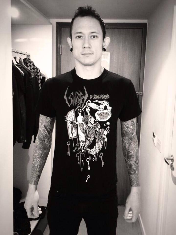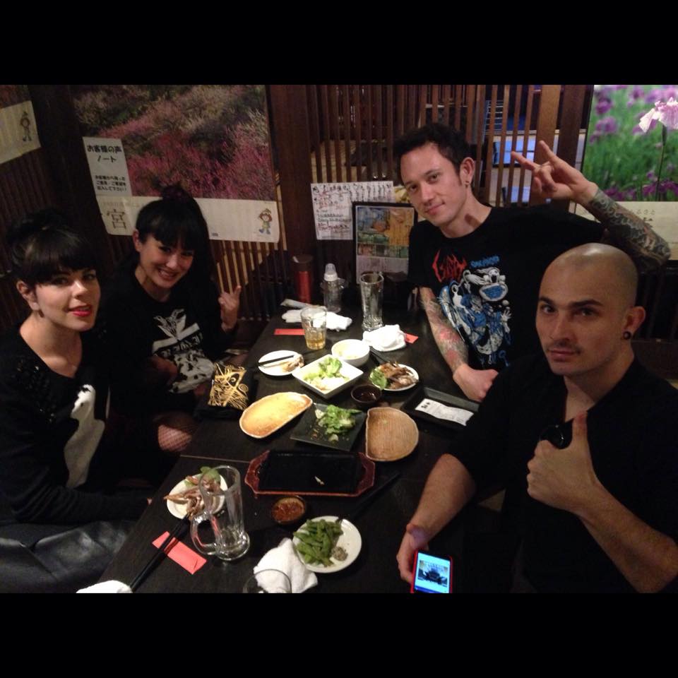 Fotos: La portada del disco Graveward, Matt portando una playera de Sigh, Matt junto a Sigh & y Matt Heafy, Ashley Heafy y Paolo Gregoletto junto a "Dr. Mikannibal" de Sigh.