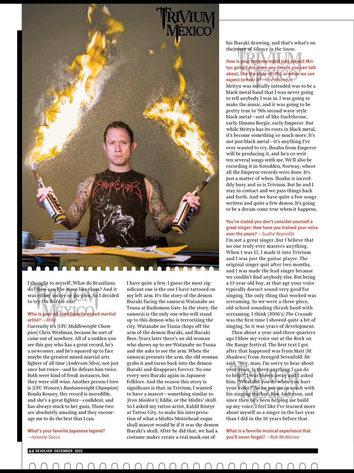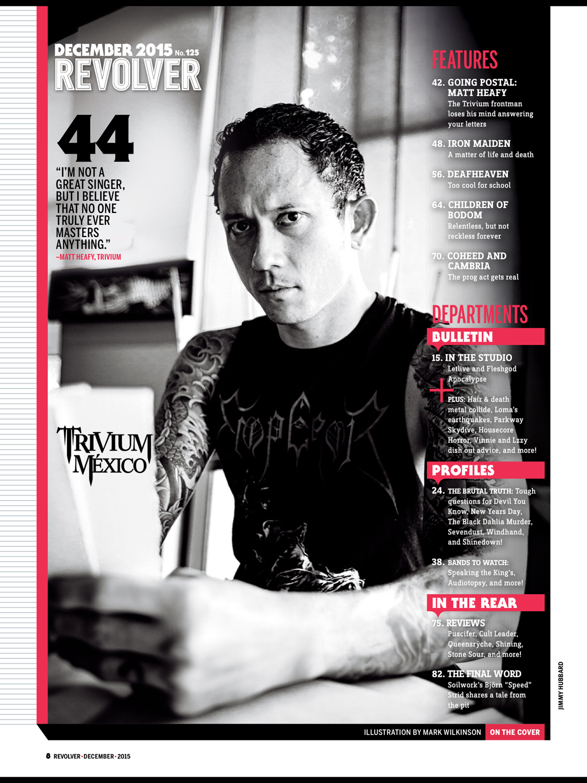 Cuando Revolver se puso al día con Matt Heafy era temprano en el día – pero el cantante y guitarrista de Trivium ya había abarcado mucho terreno. “Desperté, fui al gimnasio a levantar pesas, hice una hora de guitarra y otra hora de canto,” dice en su respuesta característicamente rápida. “Oh, y también hice algunas labores domésticas. Así que ha sigo un día muy productivo hasta ahora.”