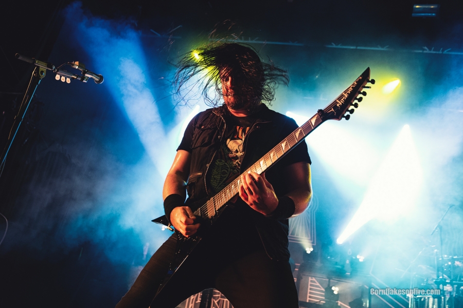 Corey: "Estamos bastante activos con la rotación de nuestro setlist. Siempre es divertido con las cosas viejas, con Alex incorporándose, y hay muchas cosas en los viejos discos que no estuvimos tocando durante mucho tiempo nada más porque… la persona que tocaba la batería con nosotros, o tal vez hay ciertas canciones… Tenemos mucha variedad de material en nuestro catálogo pasado y hay algunas canciones que en lo que respecta a batería, llevan bastante doble bombo y cosas rápidas. Algunos de los bateristas anteriores podían manejar gran parte del material, pero en el lado más extremo de la banda quizás no estaban en su zona de confort. Hay ciertas canciones en los viejos discos que no estuvimos tocando en vivo durante años solo porque sabíamos que no sonarían de la forma en que debían estar en vivo, así que con Alex que es capaz de tocar cualquier cosa, desde las más simples de rock hasta las más rápidas y de doble bombo, hemos estado retrocediendo. En nuestros sets como líderes de cartel hemos estado tocando un montón de cosas que no hemos tocado en cinco, siete años, así que ha sido muy divertido en ese sentido. Para el resto de nosotros, tocar estas canciones durante años, luego poder tocar una canción que personalmente no hemos tocado en cinco años como mínimo, o una canción que nunca hemos tocado en una gira, ponerla en el setlist y sorprender a los fanáticos con cosas que normalmente no escucharían es muy divertido; nos gusta no siempre tocar las mismas canciones. Eso se pone un poco aburrido. Siempre es divertido tener dentro y fuera algunas canciones viejas porque al balancear el setlist con canciones nuevas y viejas, estamos tocando algunas cosas viejas que normalmente no tocamos y que hacen que sea divertido para el resto de nosotros."