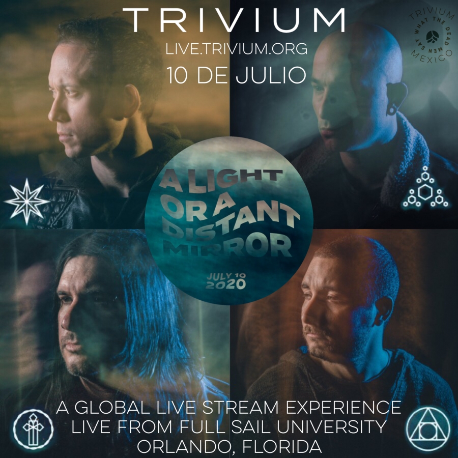 En fin, comenzamos con este resumen de noticias con la más reciente: El viernes 10 de julio Trivium tendrá una transmisión en vivo (live stream) desde Full Sail University en Orlando, Florida. El evento se llama “A Light Or A Distant Mirror” y será una actuación completamente en vivo con un show que contará con una nueva producción y visuales dignos de espectáculo de arena, tal como lo hubieran efectuado si no hubiesen tenido que posponer su gira de verano. Por tal motivo, este show especial tendrá un costo de 9 dólares y los boletos están a la venta ahora a través de live.trivium.org, donde también podrán encontrar mercancía de edición limitada y paquetes VIP. El evento comienza a las 2 PM; los invitados serán Sylosis y será presentado por Beez de Mosh Talks. Pueden ver el tráiler y algo de la merch a continuación: