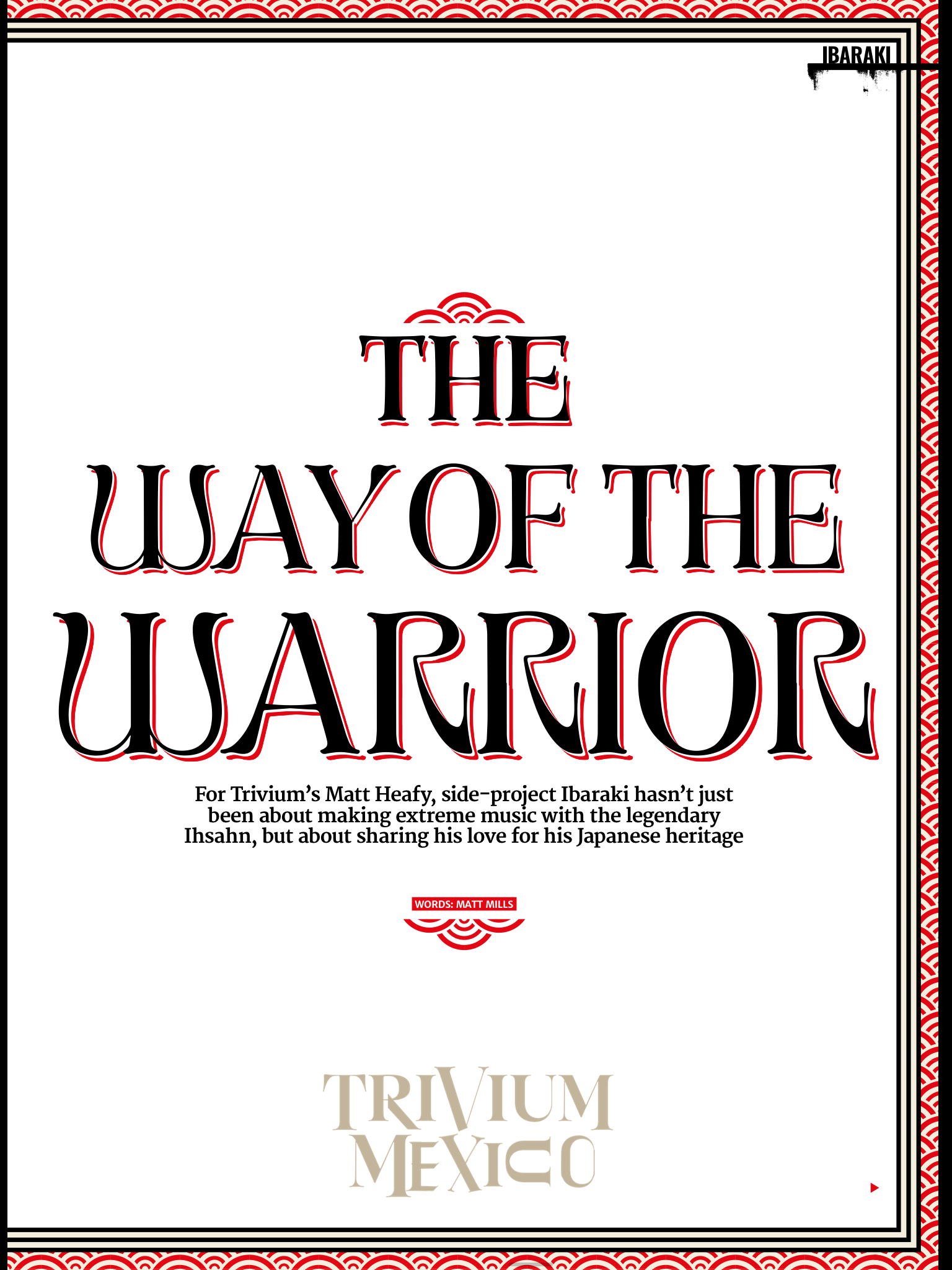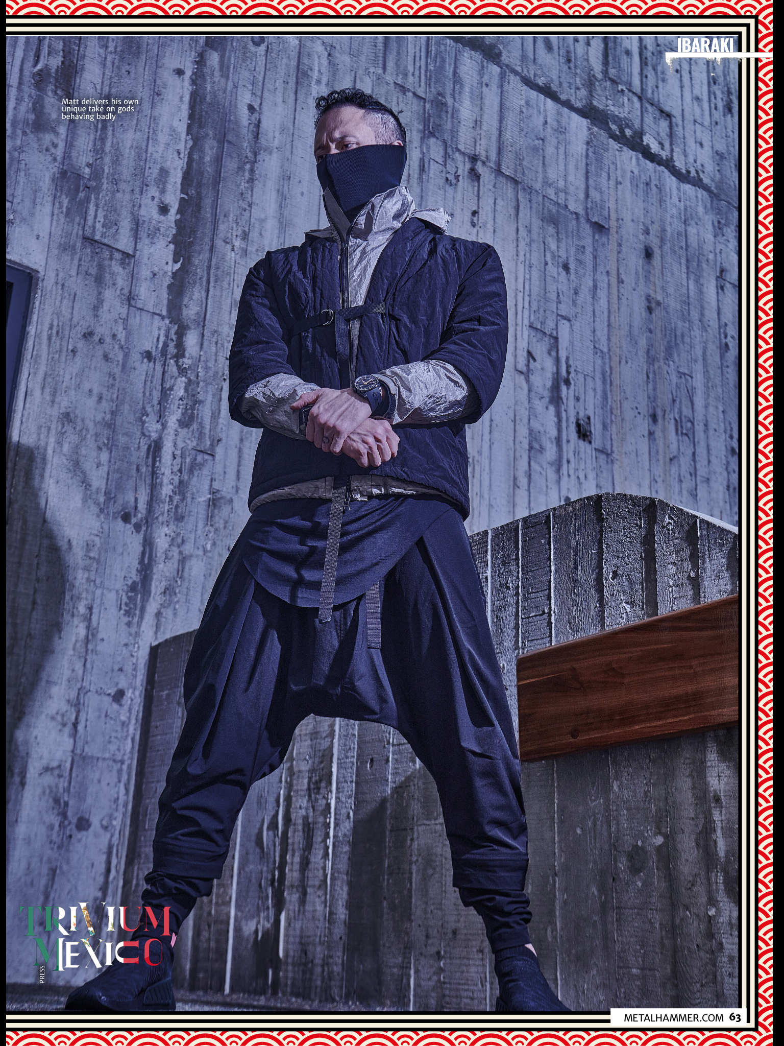 La sugerencia tuvo perfecto sentido. Matt tiene un tatuaje en la espalda de Susanoo No Mikoto y Yamata No Orochi luchando, y una pieza inspirada en la Batalla de Rashomon Gate en su brazo izquierdo. Además, la calavera de Ibaraki-Dōji se ha convertido en la mascota de facto de Trivium desde que apareció en la portada de su álbum de 2015, Silence In The Snow. Y mientras comparte historias de su lugar de nacimiento en entrevistas que promocionan a Ibaraki, considera que 2022 es el momento ideal para enseñarle al mundo sobre la rica mitología de Japón.